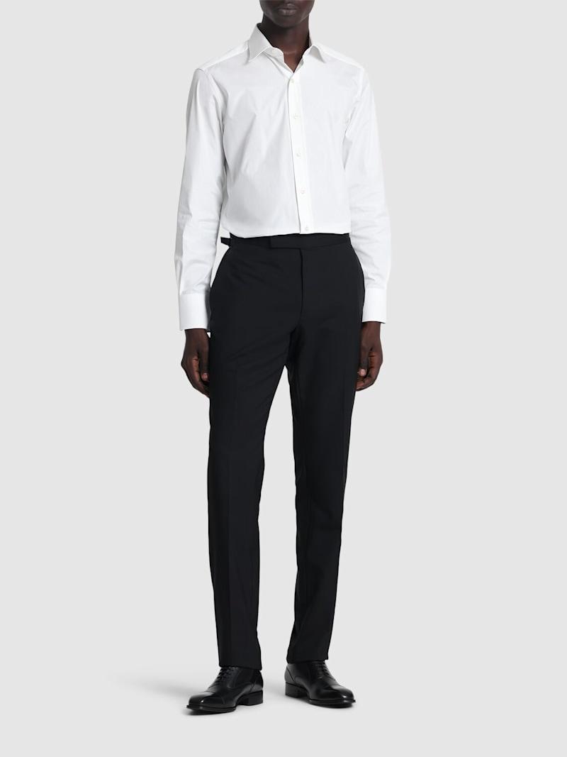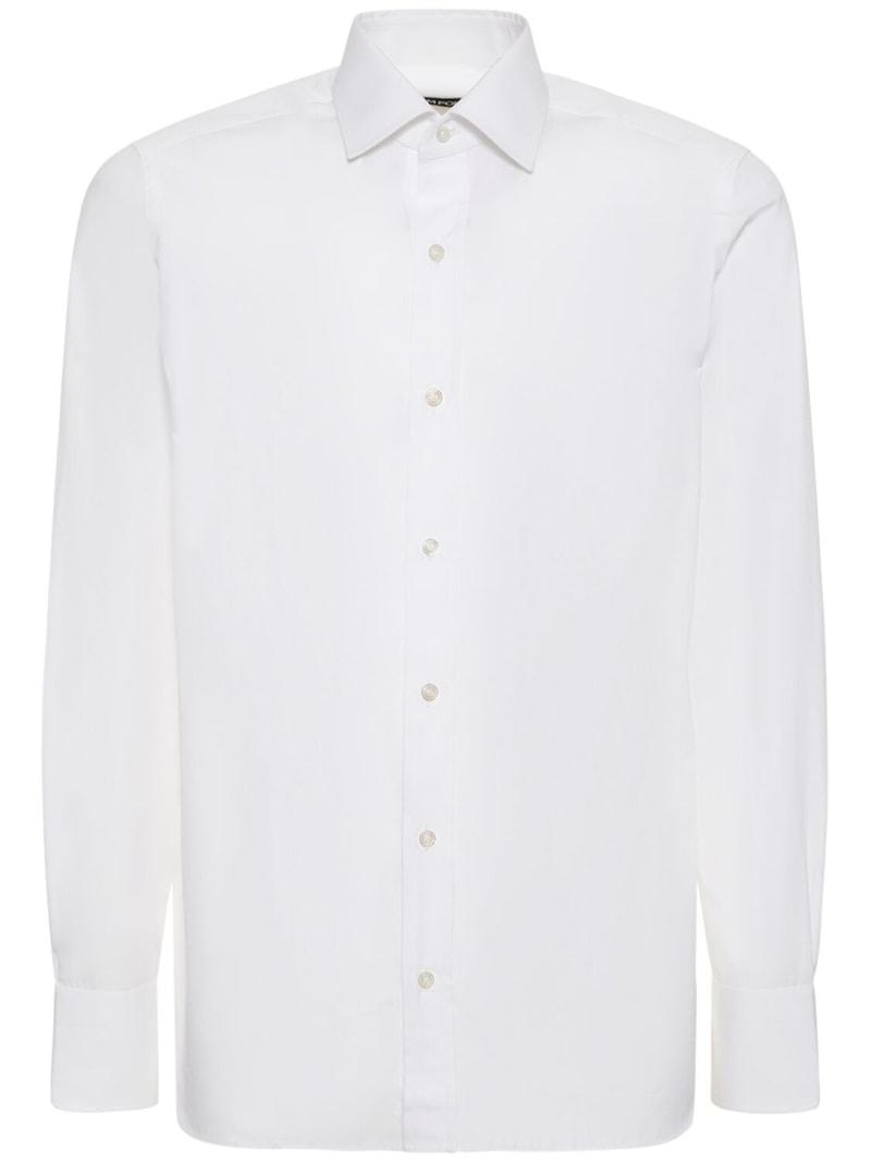 修身府绸衬衫 - 白色 - 男士 - Tom Ford - 正面纽扣开合.