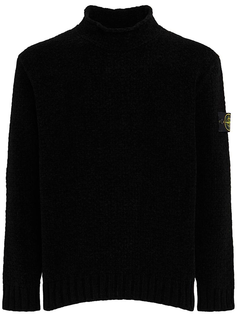 棉质绳绒圆领毛衣 - 黑色 - 男士 - Stone Island - 罗纹边缘.