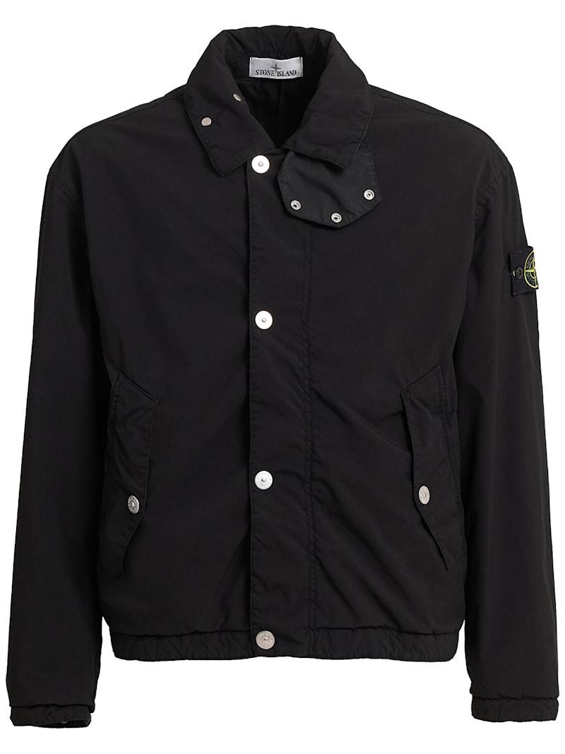 轻薄聚酯混纺夹克 - Juniper - 男士 - Stone Island - 正面按扣和隐形拉链开合.