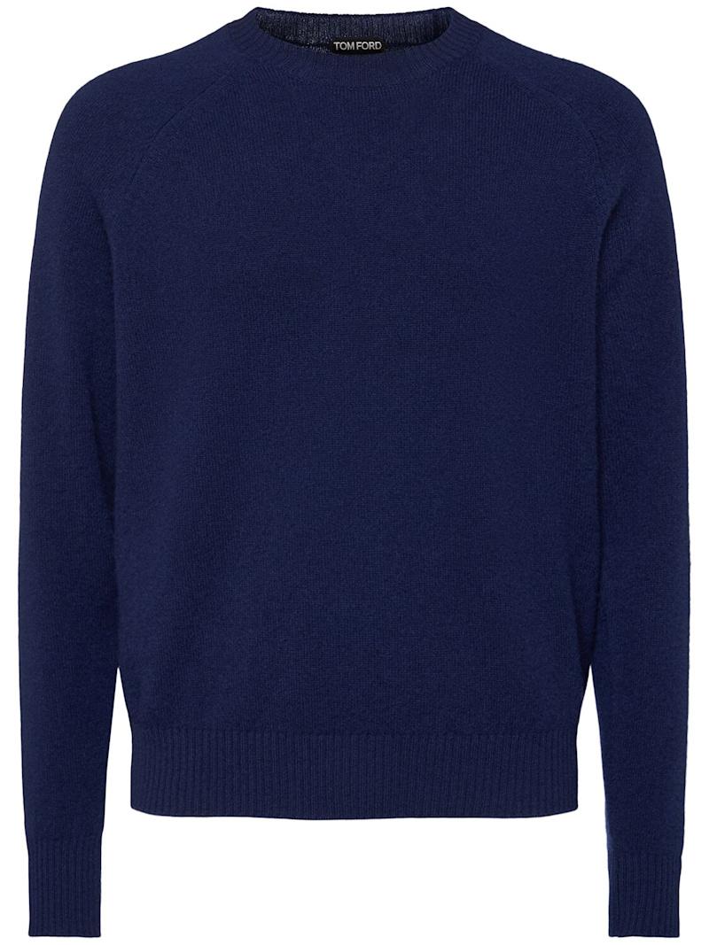 羊毛&羊绒圆领毛衣 - 海洋蓝 - 男士 - Tom Ford - 罗纹领口、袖口和下摆