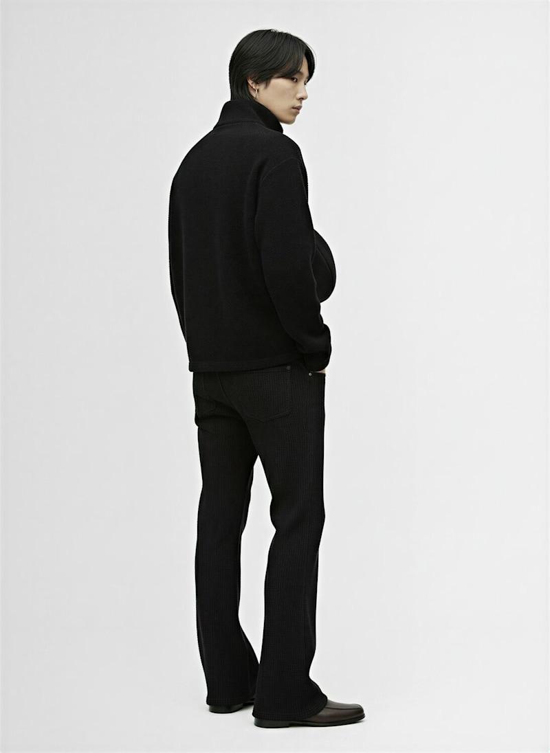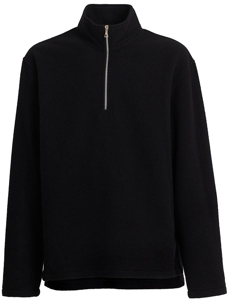 羊毛polo卫衣 - 黑色 - 男士 - Rier - 正面半长拉链开合