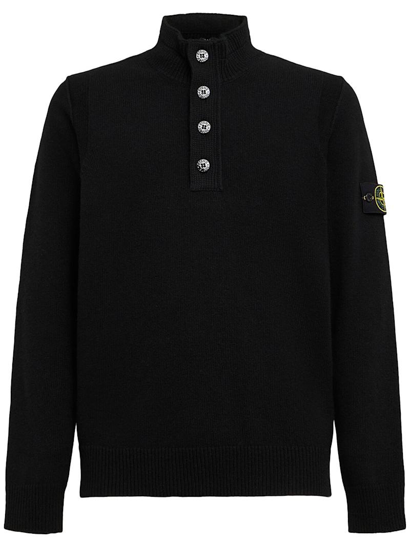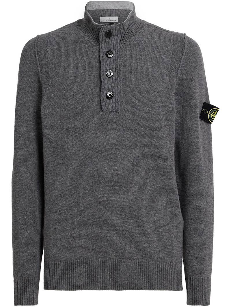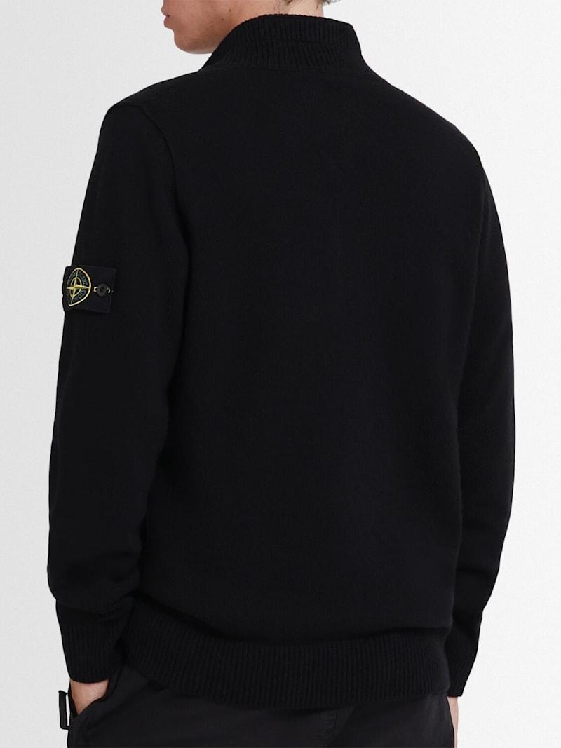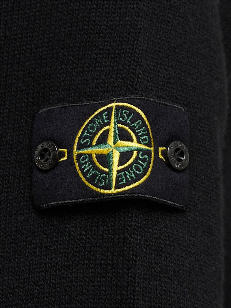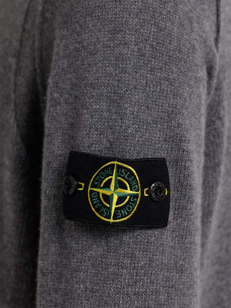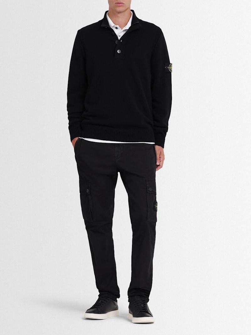 长袖羊毛混纺POLO衫 - 象牙色 - 男士 - Stone Island - 正面半开襟纽扣.