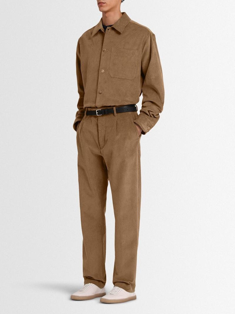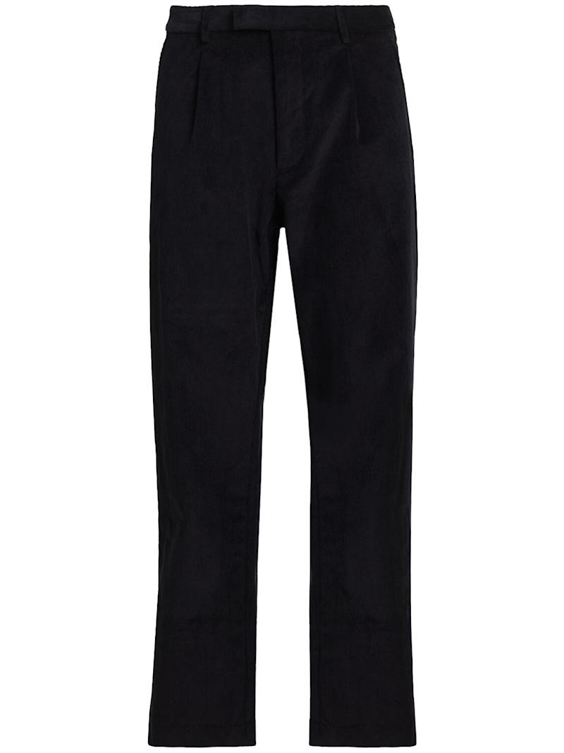 混棉灯芯绒直筒裤 - 黑色 - 男士 - The Core - 隐藏式正面粘扣开合.