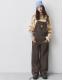 Pull&Bear Washed finish balloon dungarees in ochre