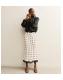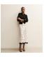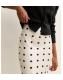 Cream Satin Polka Dot Lace Trim Midi Skirt