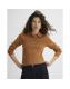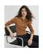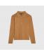 Brown Knitted Embellished Button Polo Top