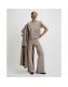 Beige Knitted Wide Leg Trousers