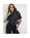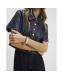 Navy Faux Leather Scallop Trim Studded Top