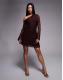 ASOS DESIGN lace off shoulder mini dress in chocolate