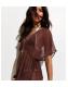 Dark Brown Sheer Sparkly Beach Kaftan Dress