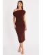 Dresses | Brown Ruched Off Shoulder Midi Dress | Quiz