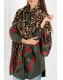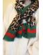 Gloves & Scarves | Leopard & Strip Print Fringed edges Scarf In Green & Red | FS Collection