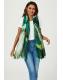 Gloves & Scarves | Gold Foil Abstract Brush Print Fringed edges Scarf In Green | FS Collection