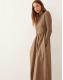 Threadbare high neck jersey poplin mix midi dress in mocha