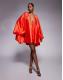 The Dolls House Circa Lorena satin volume sleeve plunge neck mini dress in red