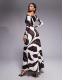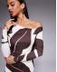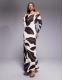 Forever New Aimee one shoulder long sleeve mesh maxi dress in brown abstract print