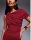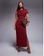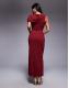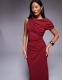 Forever New Petite mesh ruched cape shoulder detail midi dress in burgundy