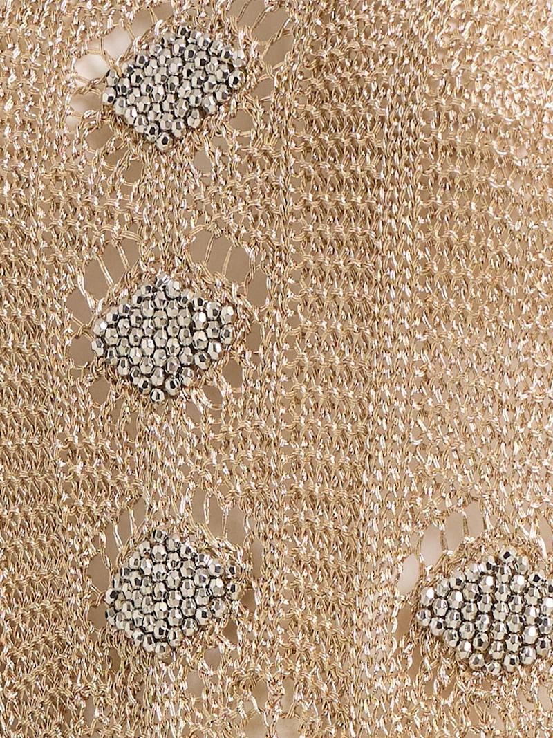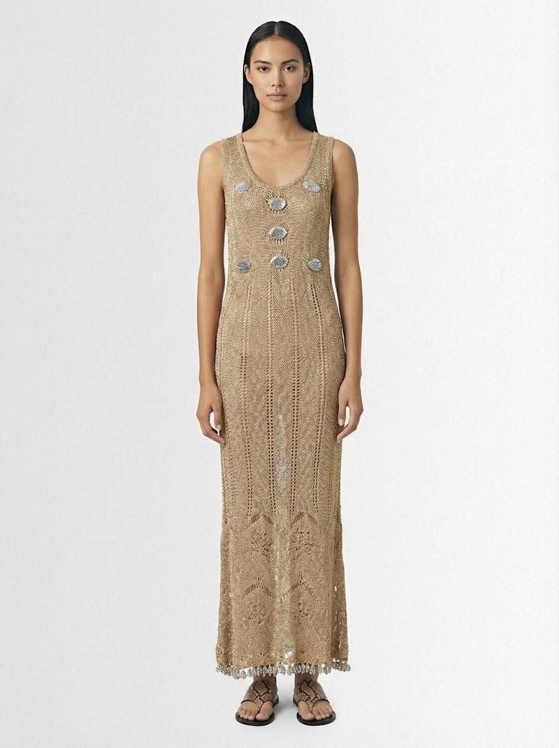金属细节钩织长款连衣裙 - 浅金色 - 女士 - Rabanne - 绕颈后幅系带开合.
