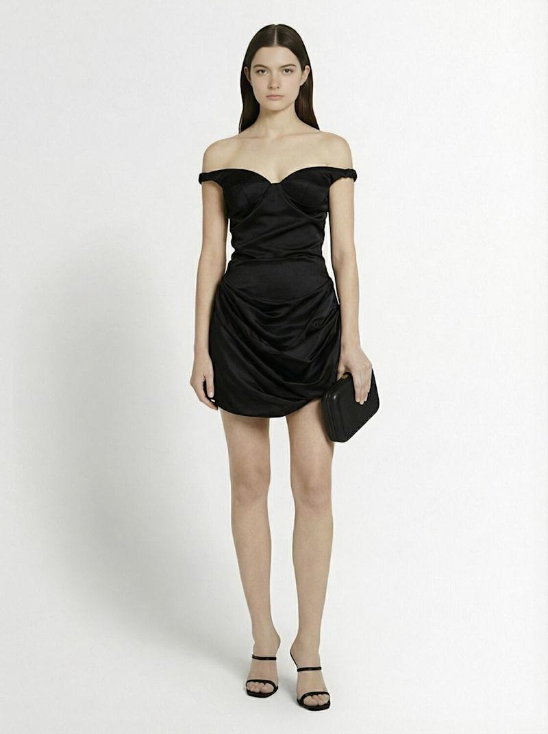 垂褶粘胶纤维混纺迷你连衣裙 - 黑色 - 女士 - Magda Butrym - 隐形开合.