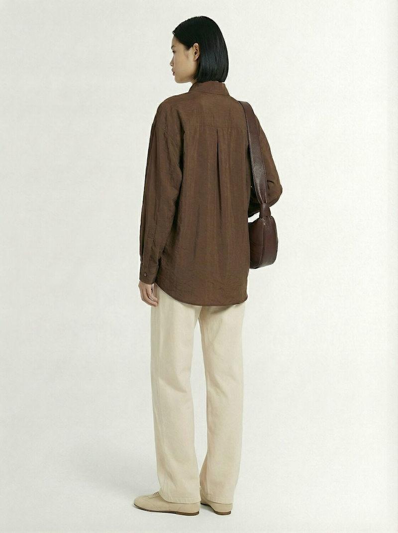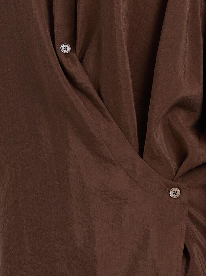 直领真丝混纺衬衫 - 棕色 - 女士 - Lemaire - 正面纽扣开合.