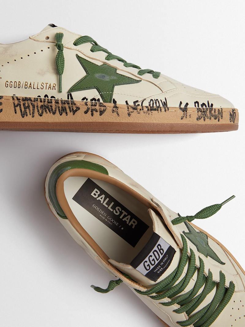 Ball Star皮革运动鞋 - 白色/绿色 - 男士 - Golden Goose - 皮革鞋面.