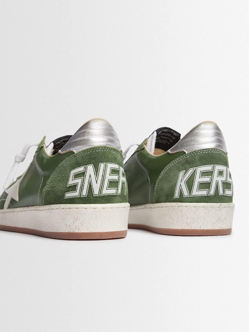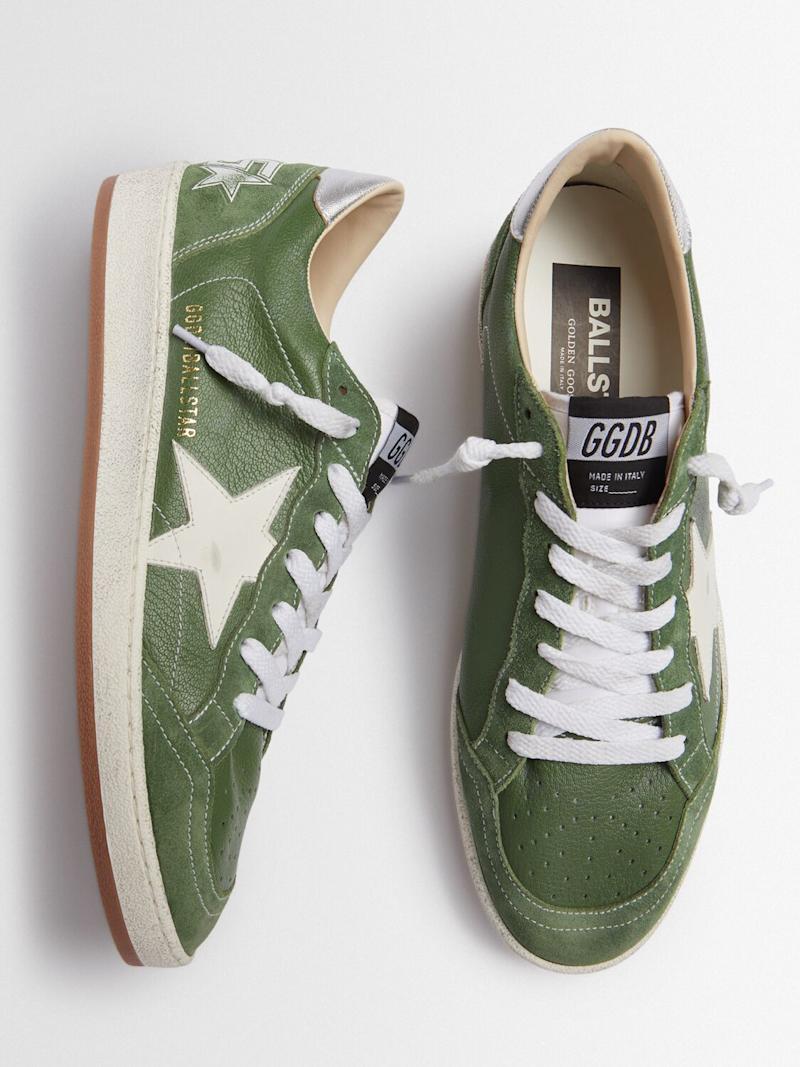Ballstar皮革运动鞋 - 绿色/银色 - 男士 - Golden Goose - 皮革鞋面.