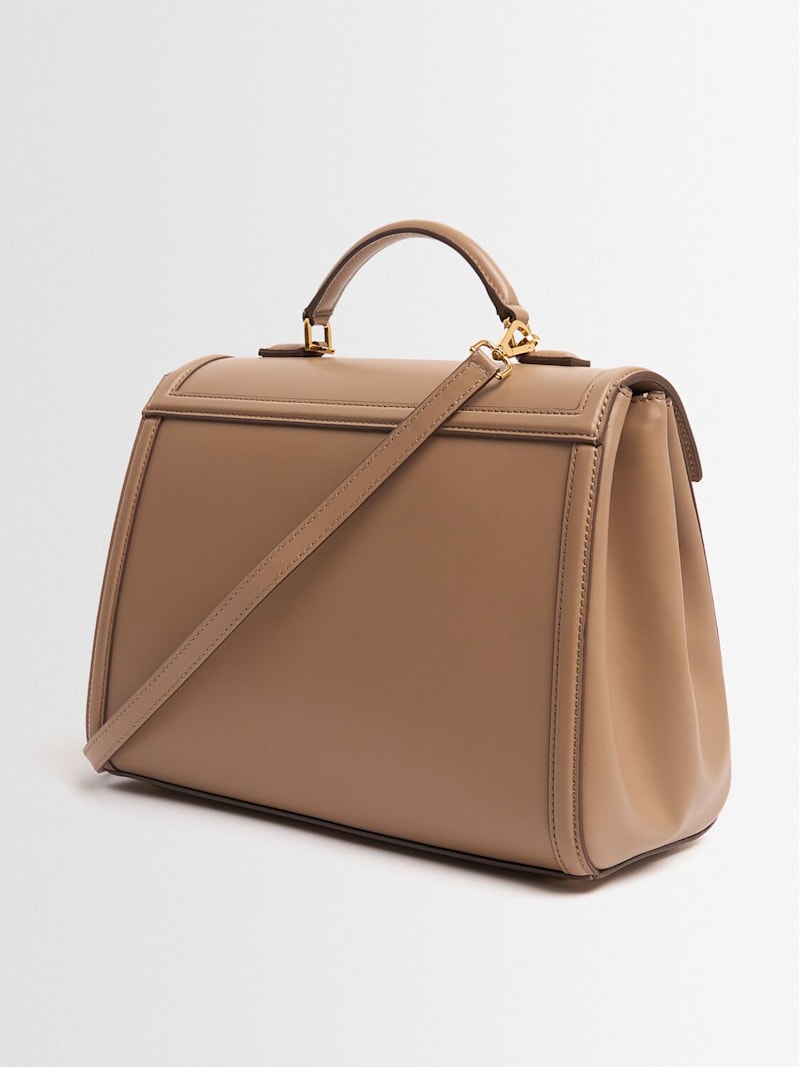 The Midi Paris光滑皮革手提包 - 深沙色 - 女士 - DeMellier - 可拆卸束带.