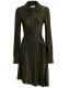 纽扣开合长袖迷你衬衫式连衣裙 - 深卡其色 - 女士 - Rabanne - 正面不对称纽扣开合.