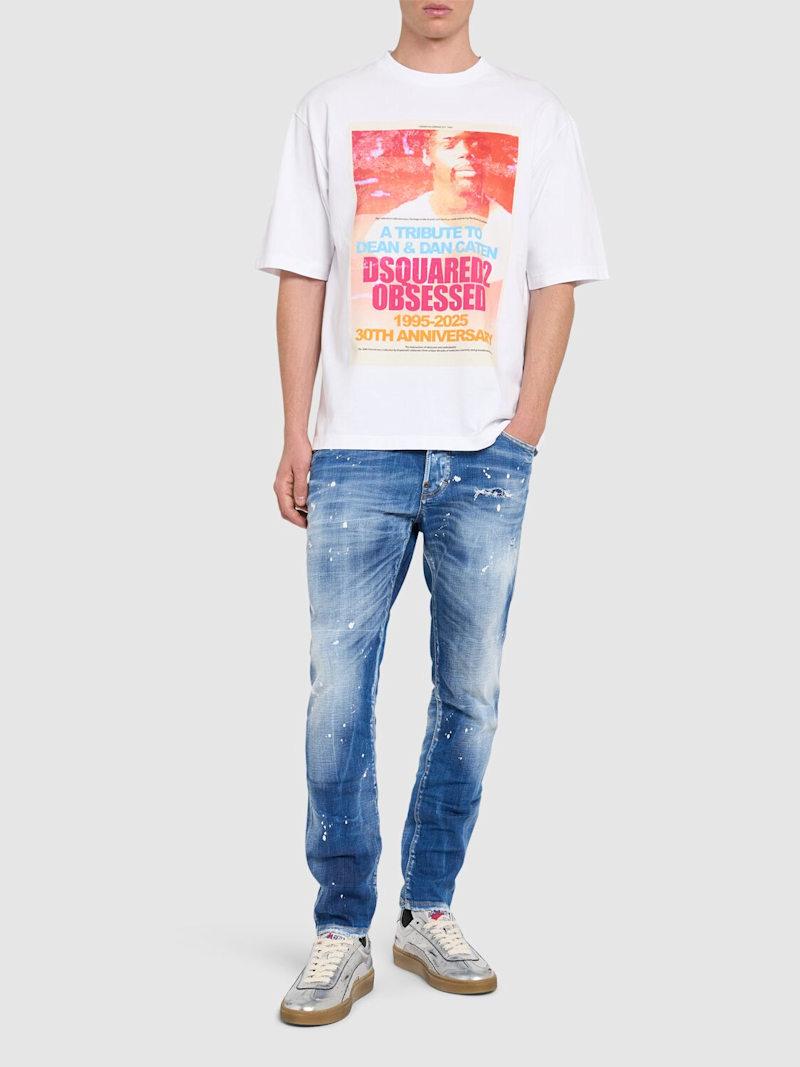 Skater混棉牛仔裤 - 海军蓝 - 男士 - Dsquared2 - 正面隐藏式纽扣开合.