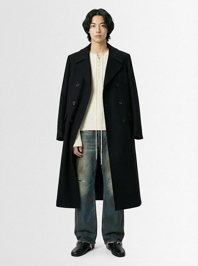 Miles长款双排扣羊毛混纺大衣 - 黑色 - 男士 - Ann Demeulemeester - 正面纽扣开合.