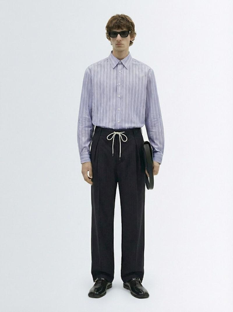 长袖棉质衬衫 - Blue Stripe - 男士 - Maison Margiela - 正面纽扣开合.