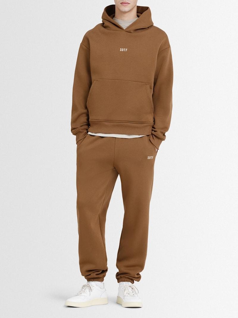 折边慢跑裤 - 棕色 - 男士 - SOTF - 抽绳弹力腰头.