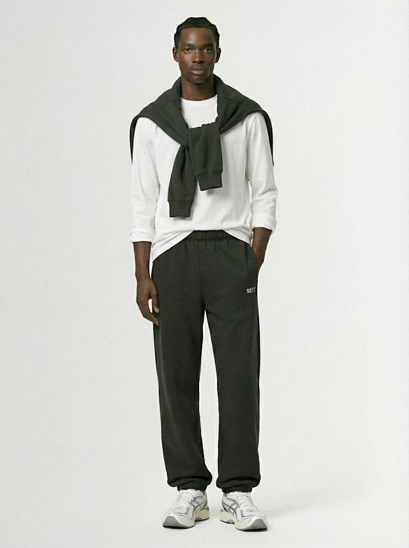 折边慢跑裤 - 军绿色 - 男士 - SOTF - 抽绳弹力腰头.