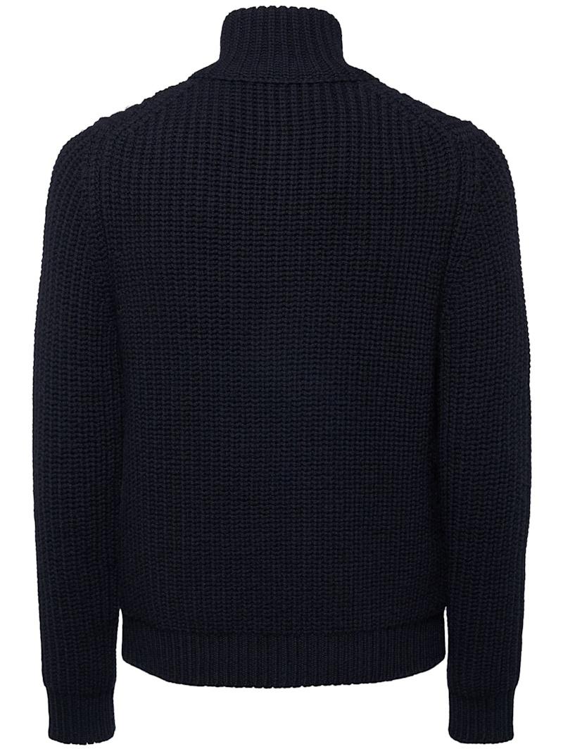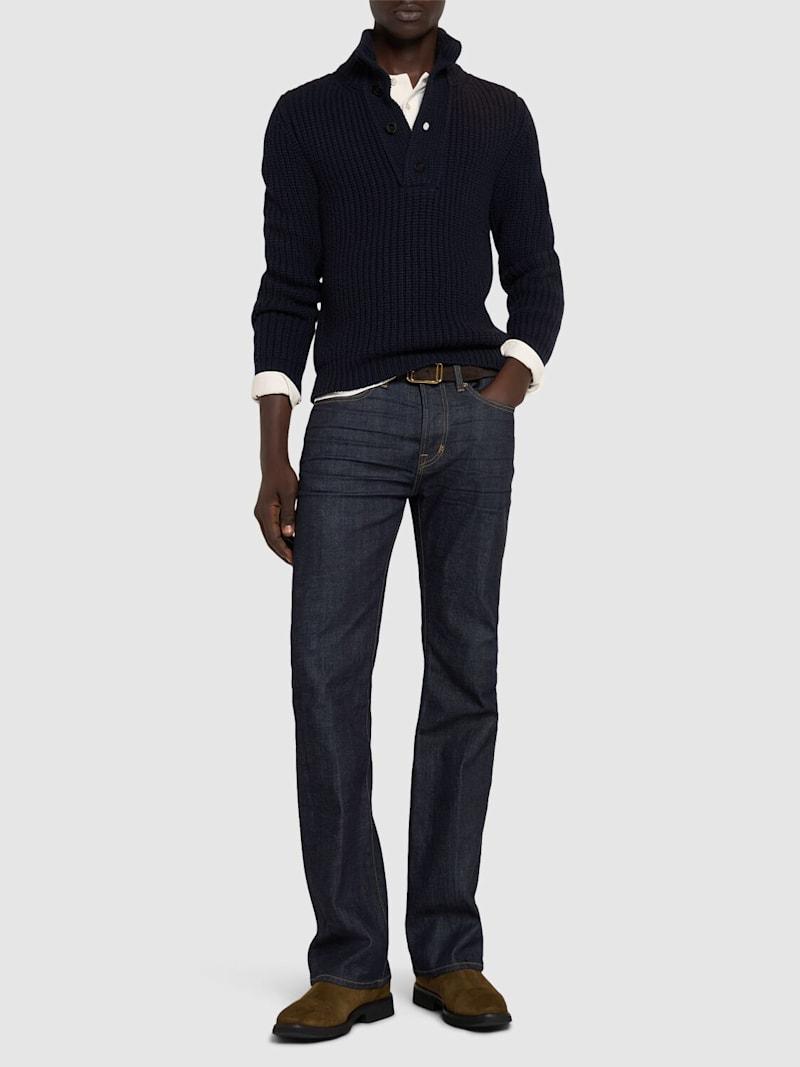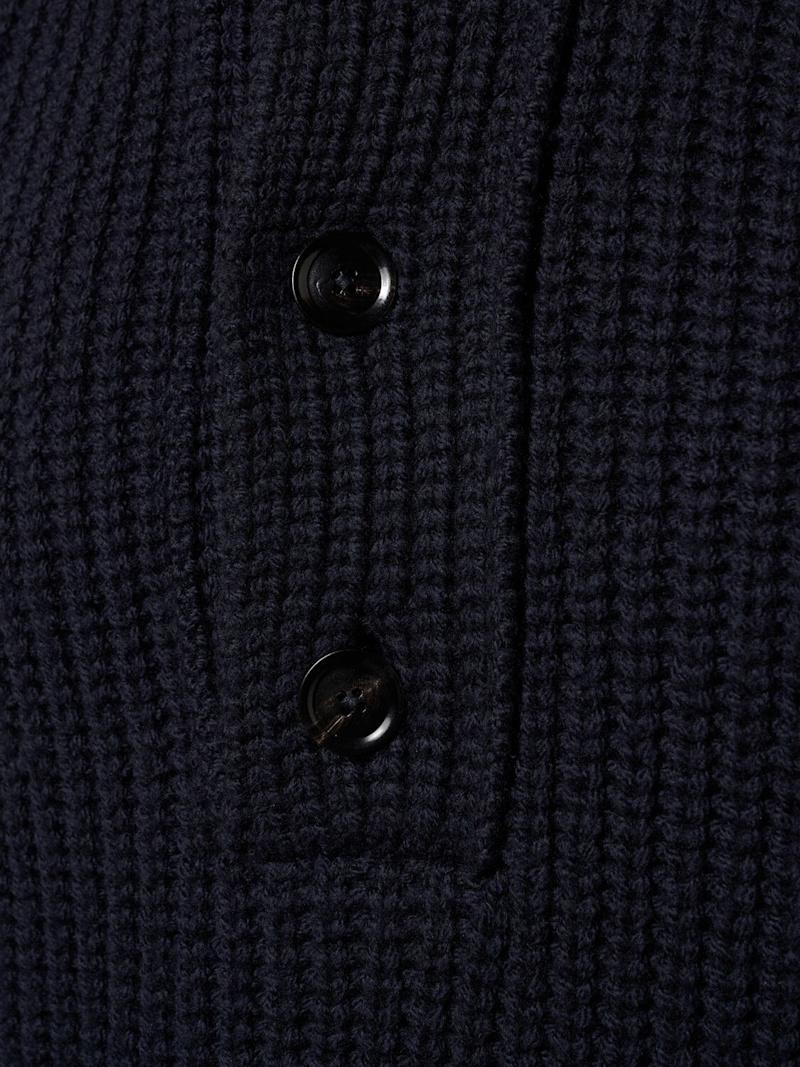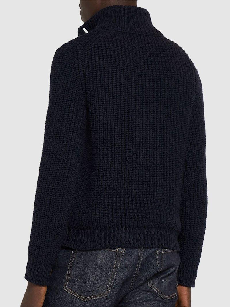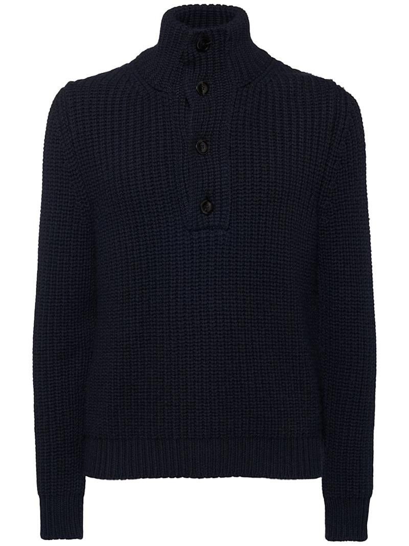 罗纹针织羊毛&羊绒毛衣 - 深蓝色 - 男士 - Tom Ford - 正面半长纽扣开合.