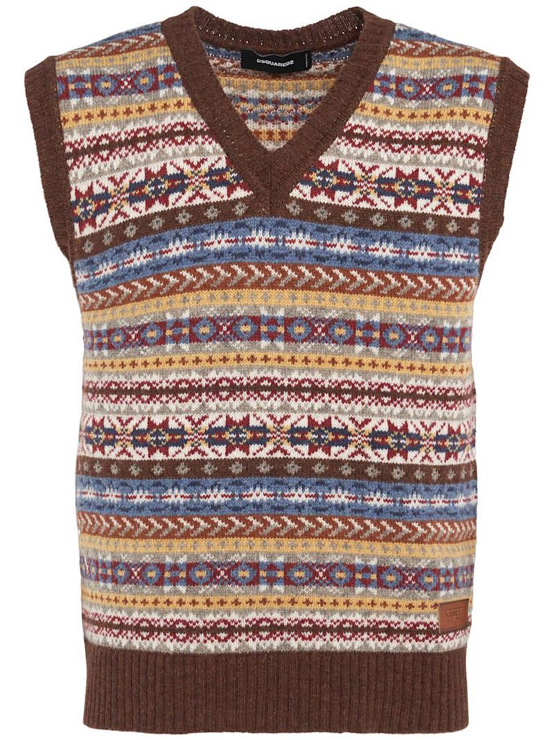 针织背心 - Multicolor Jacq - 男士 - Dsquared2 - 罗纹边缘.
