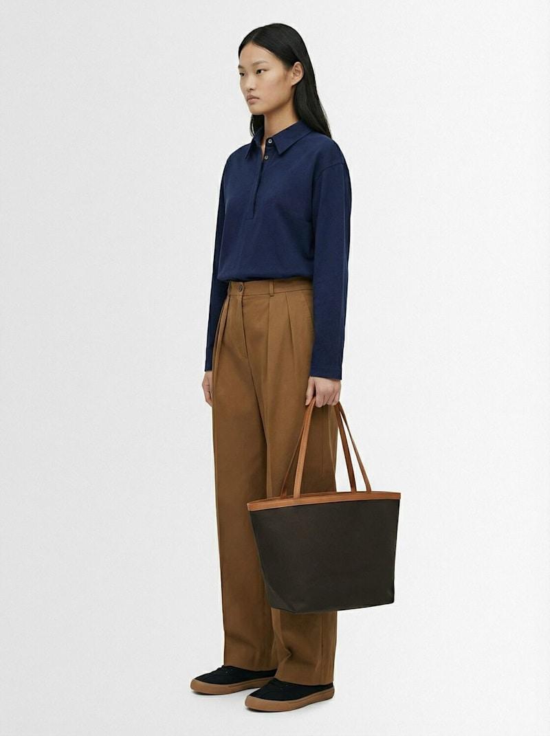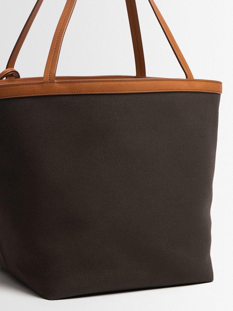Park Three帆布托特包 - Brown/Ecru/Cuir - 女士 - The Row - 双条皮革顶部提手.