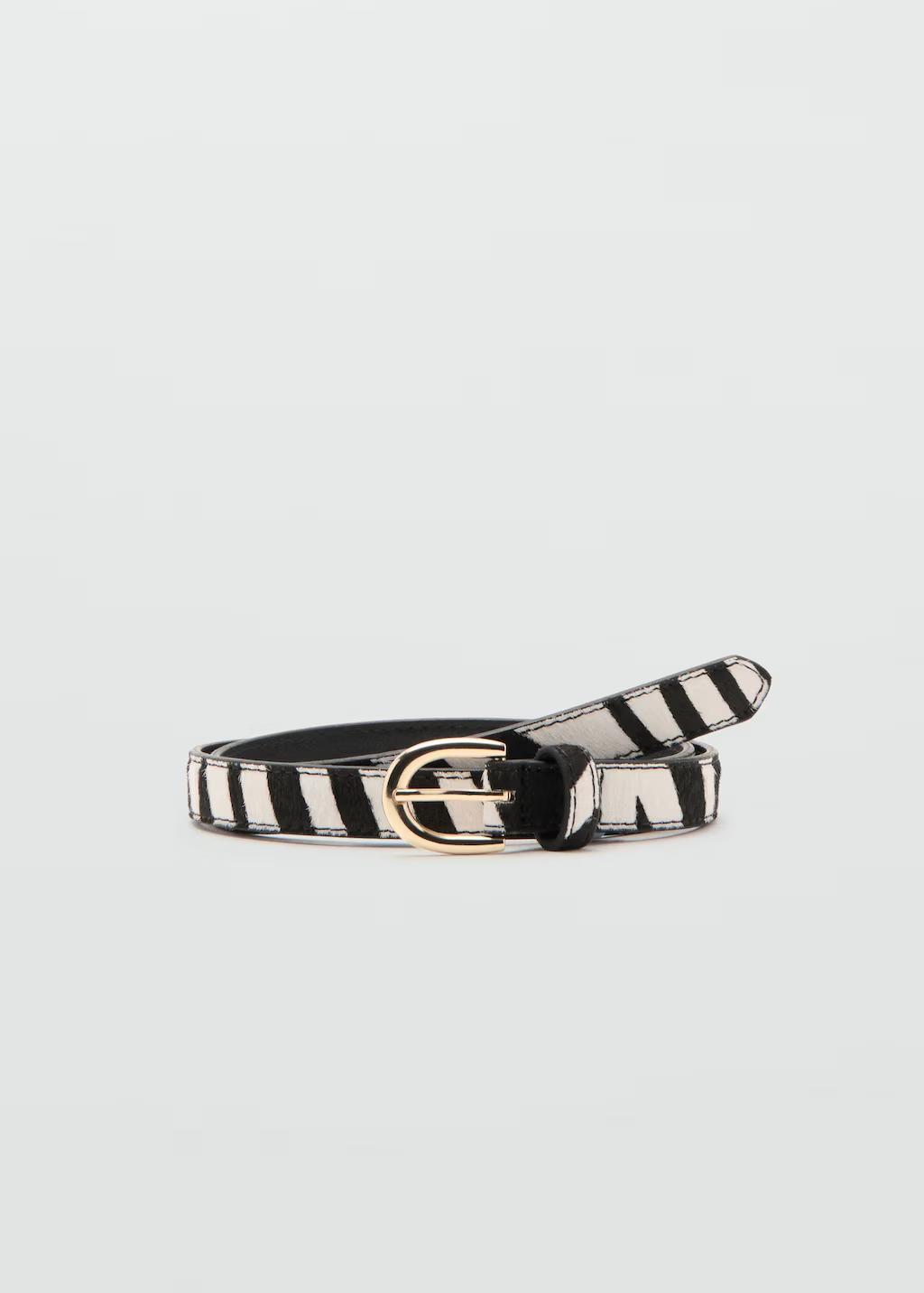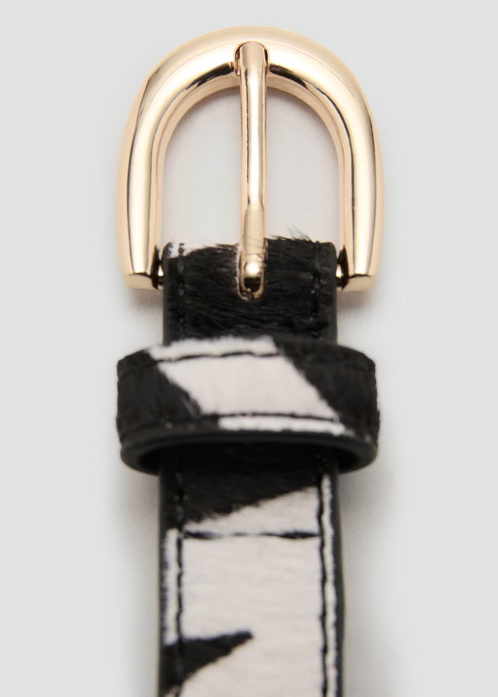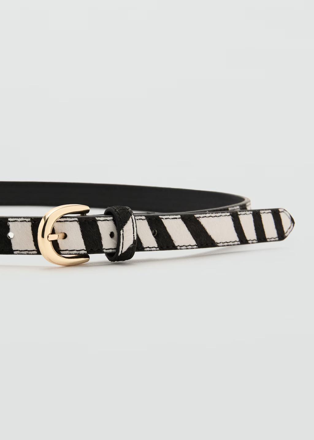 100% piel bovino con pelo. Diseño fino. Estampado animal print. Estampado de cebra. Cierre de hebilla