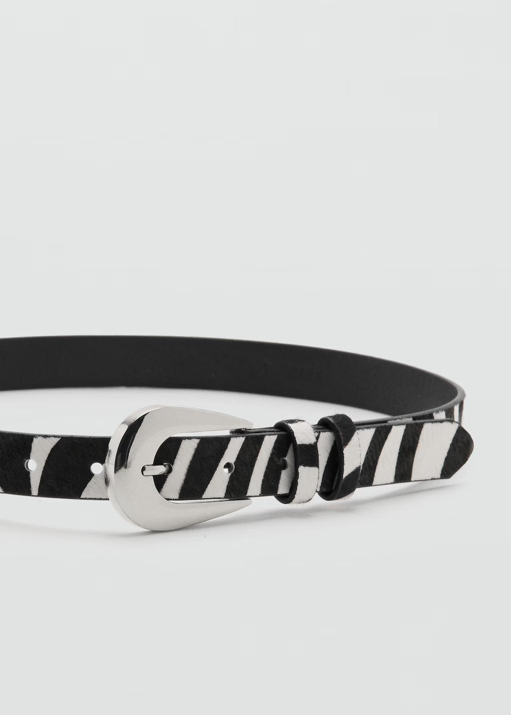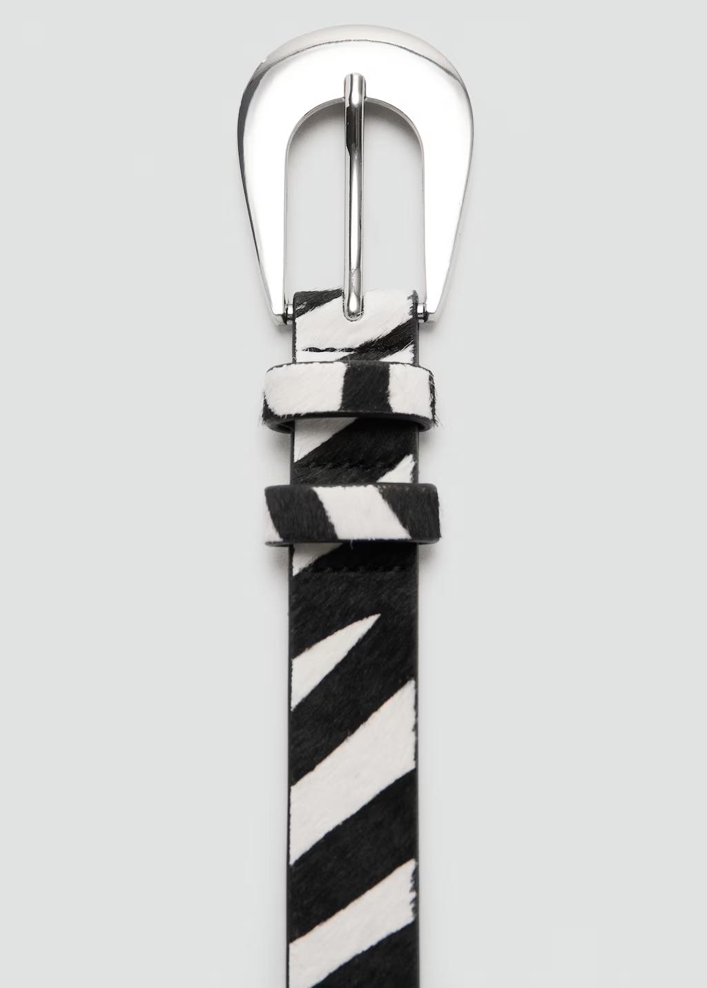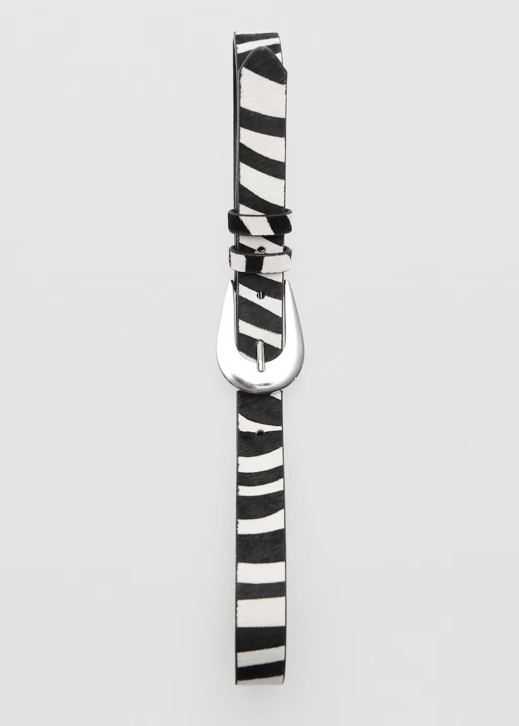 100% piel bovino con pelo. Estampado de cebra. Cierre de hebilla