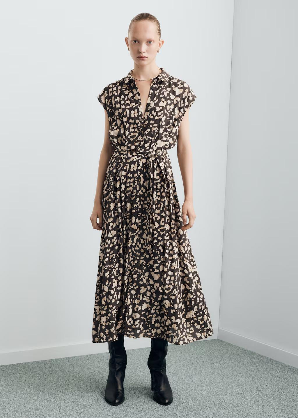 Vestido camisero estampado cinturón