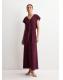 Diseño recto. Diseño midi. Cuello pico. Manga corta. Detalle cinturón en la cintura. Cierre de cremallera en la parte posterior