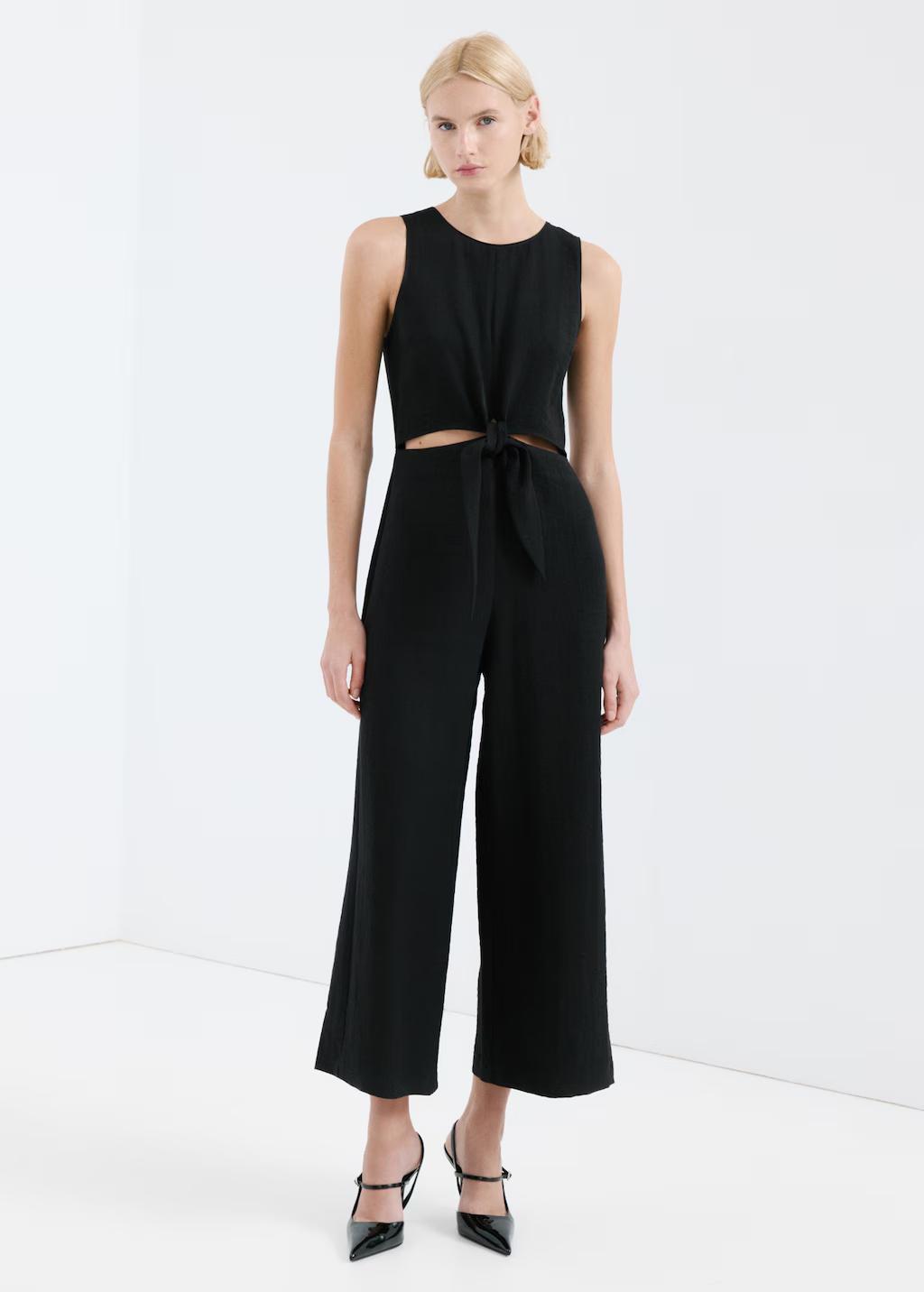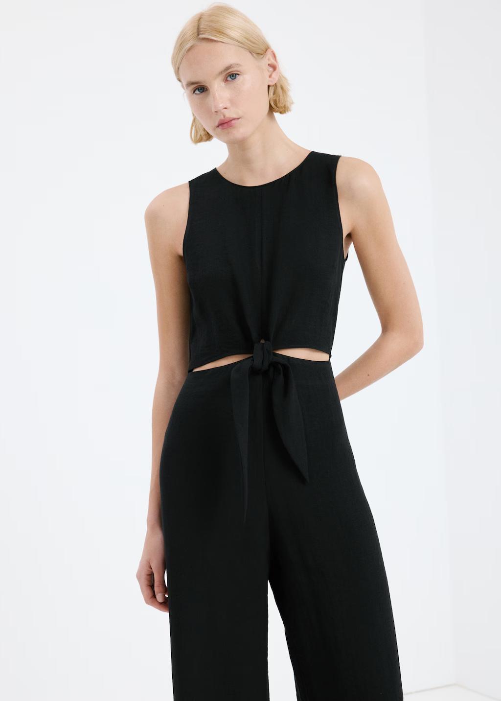 Diseño largo. Diseño crop. Diseño recto. Cuello redondo. Sin mangas. Tirantes anchos. Detalle cut out en los laterales. Detalle de nudo en la parte delantera. Cierre de cremallera en la parte posterior. Forro interior