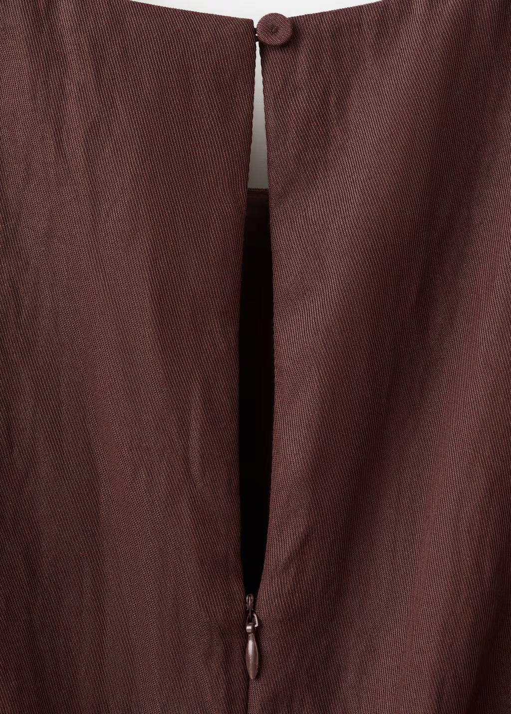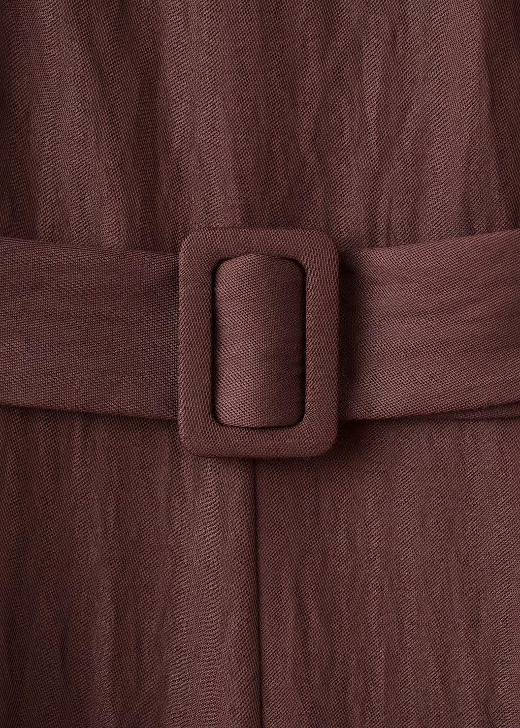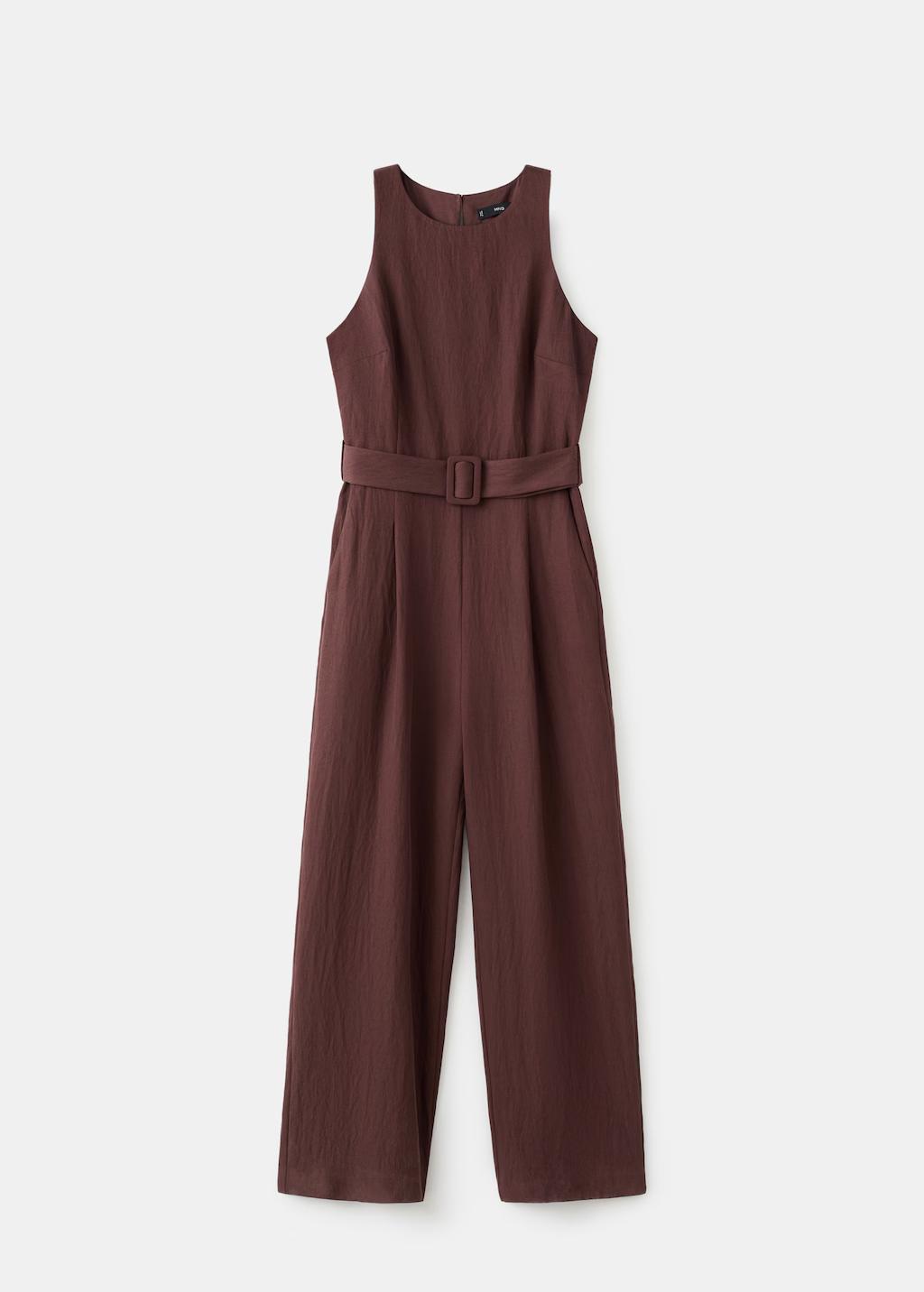 Tejido mezcla lyocell. Diseño largo. Diseño recto. Cuello redondo. Sin mangas. Trabillas. Cinturón con cierre de hebilla. Dos bolsillos laterales. Cierre de cremallera en la parte posterior. Cierre de botón en el cuello. Forro interior