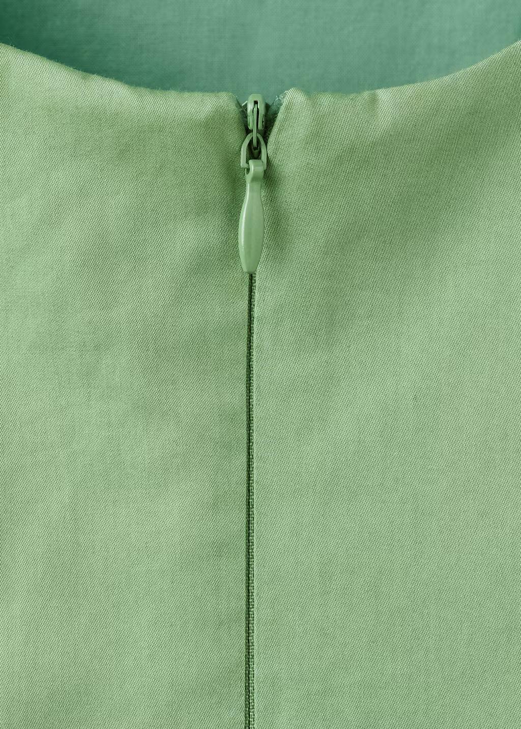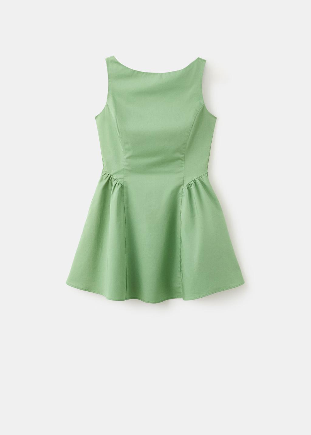 Tejido 100% algodón. Diseño corto. Diseño evasé. Cuello barco. Sin mangas. Tirantes anchos. Cierre de cremallera en la parte posterior. Forro interior