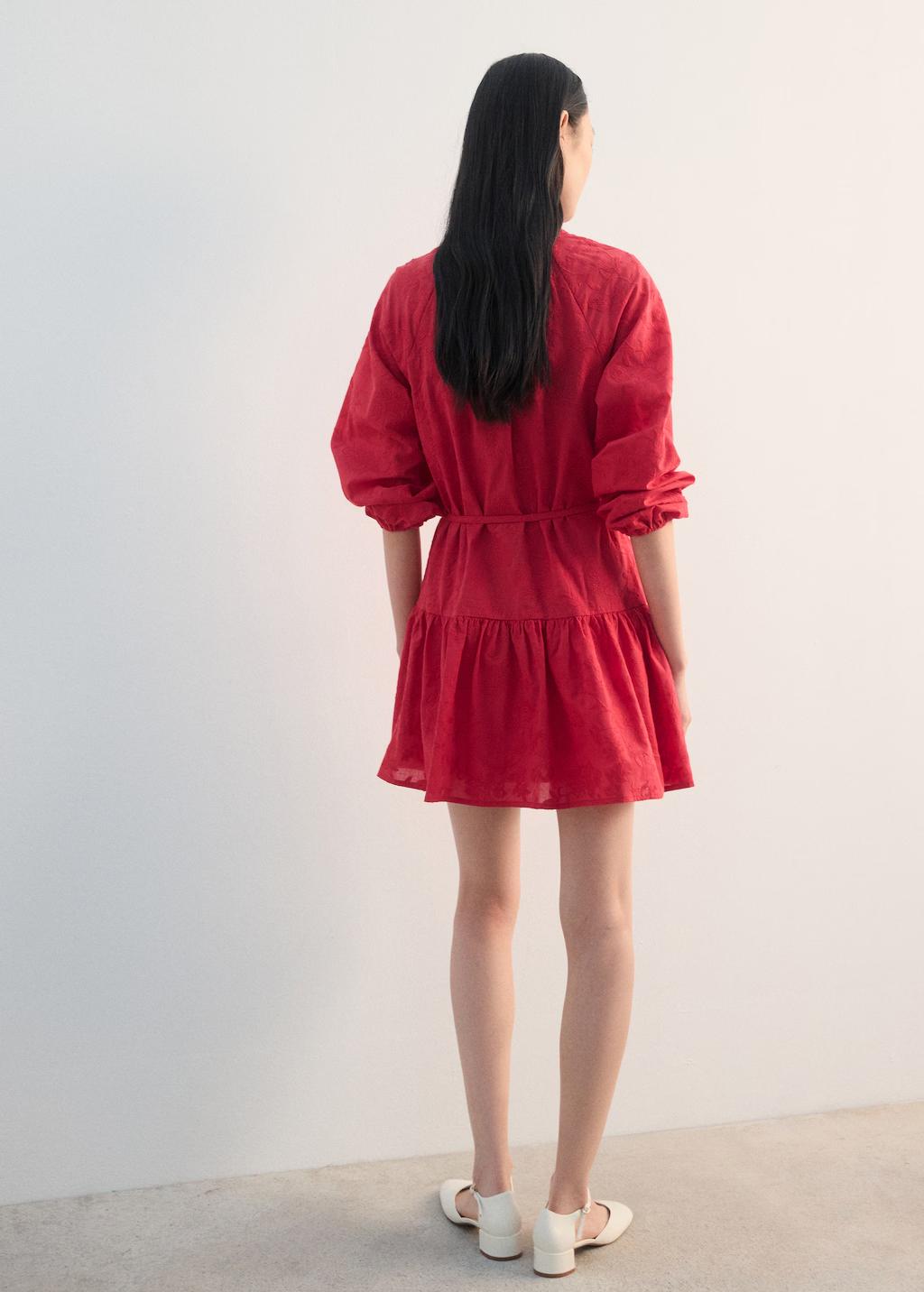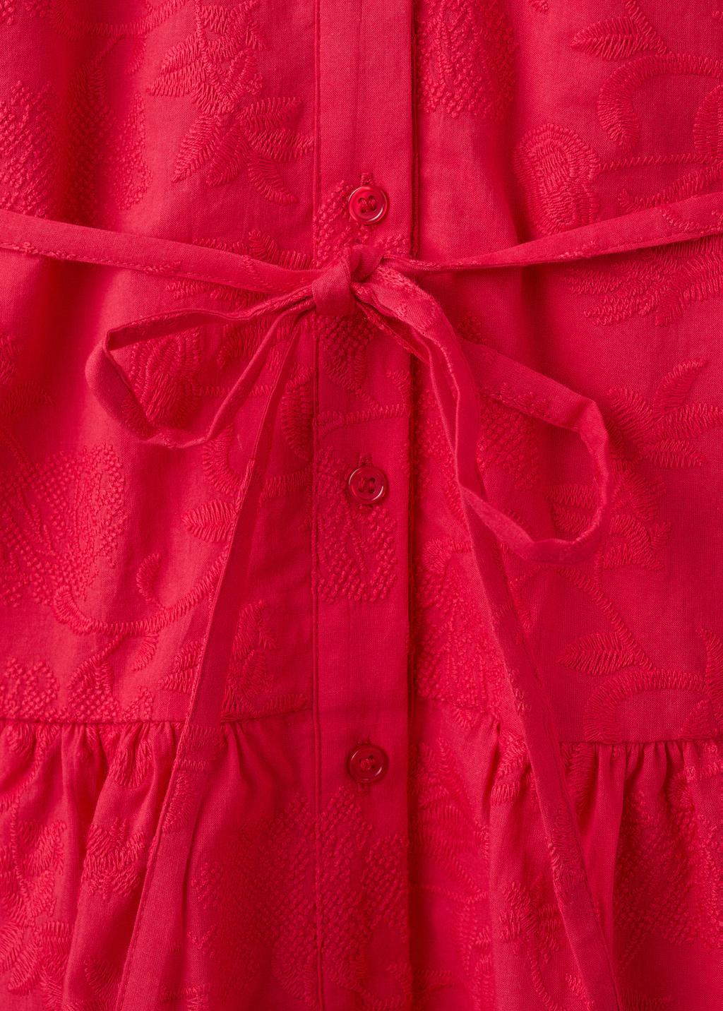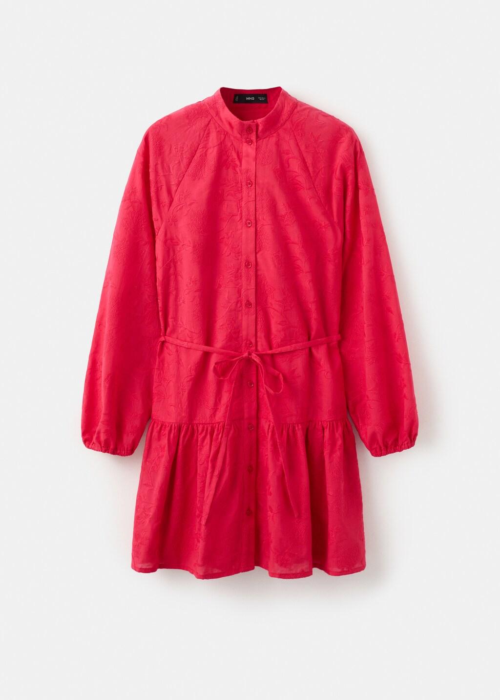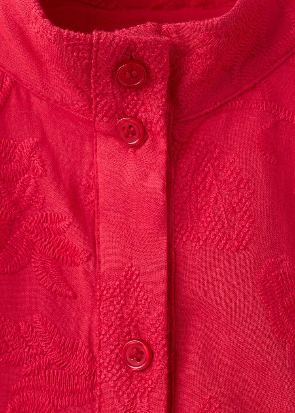 Tejido 100% algodón. Diseño recto. Diseño corto. Bordado de flores. Manga larga con puños elásticos. Cuello mao. Cierre delantero con botones. Cierre de lazo en la cintura. Forro interior