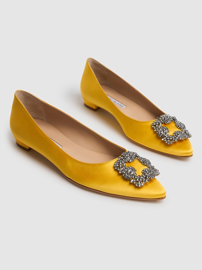 10毫米"HANGISI"真丝缎平底鞋 - 黄色 - 女士 - Manolo Blahnik - 10毫米鞋跟.