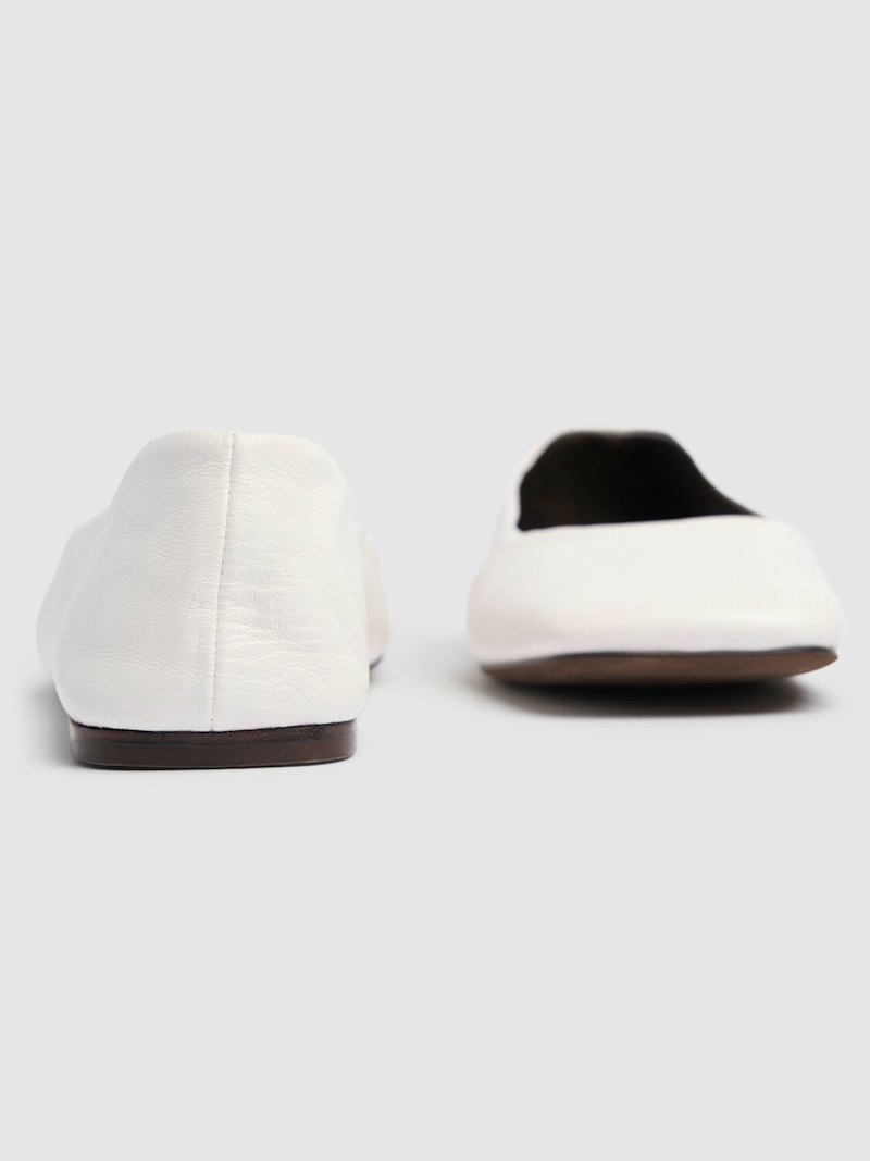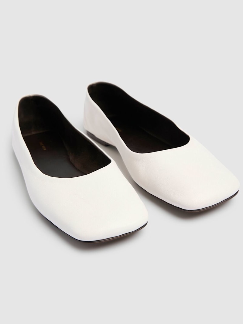 方形皮革芭蕾平底鞋 - 白色 - 女士 - The Row - 皮革鞋面.
