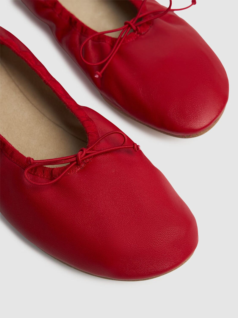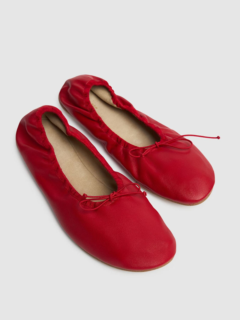 Round Ballet皮革平底鞋 - Laquer Red - 女士 - The Row - 皮革鞋面.