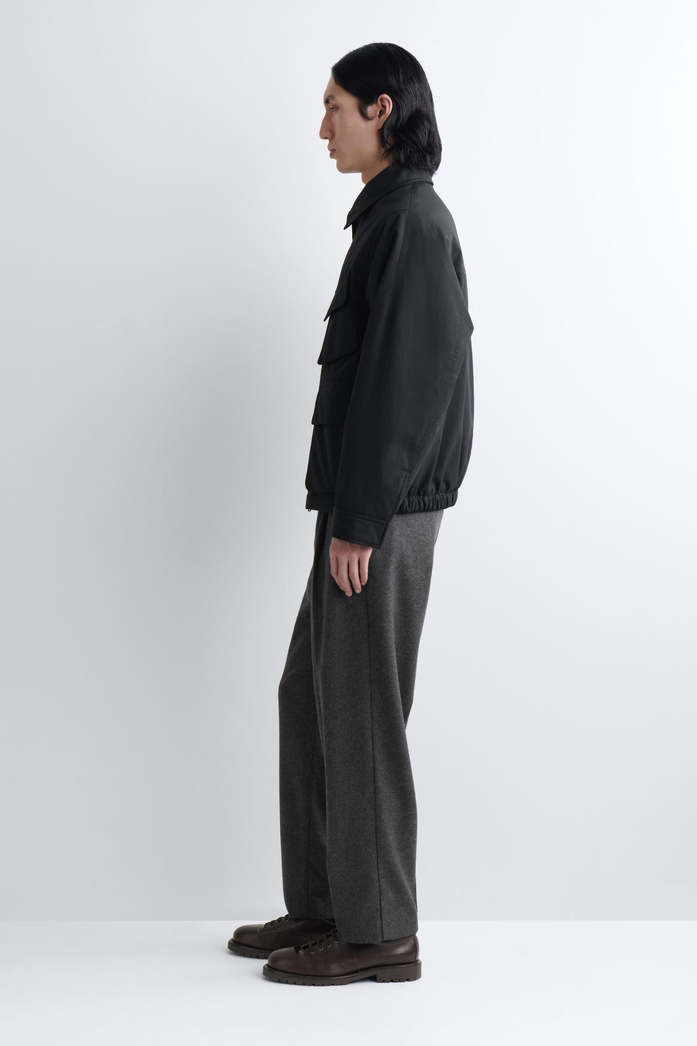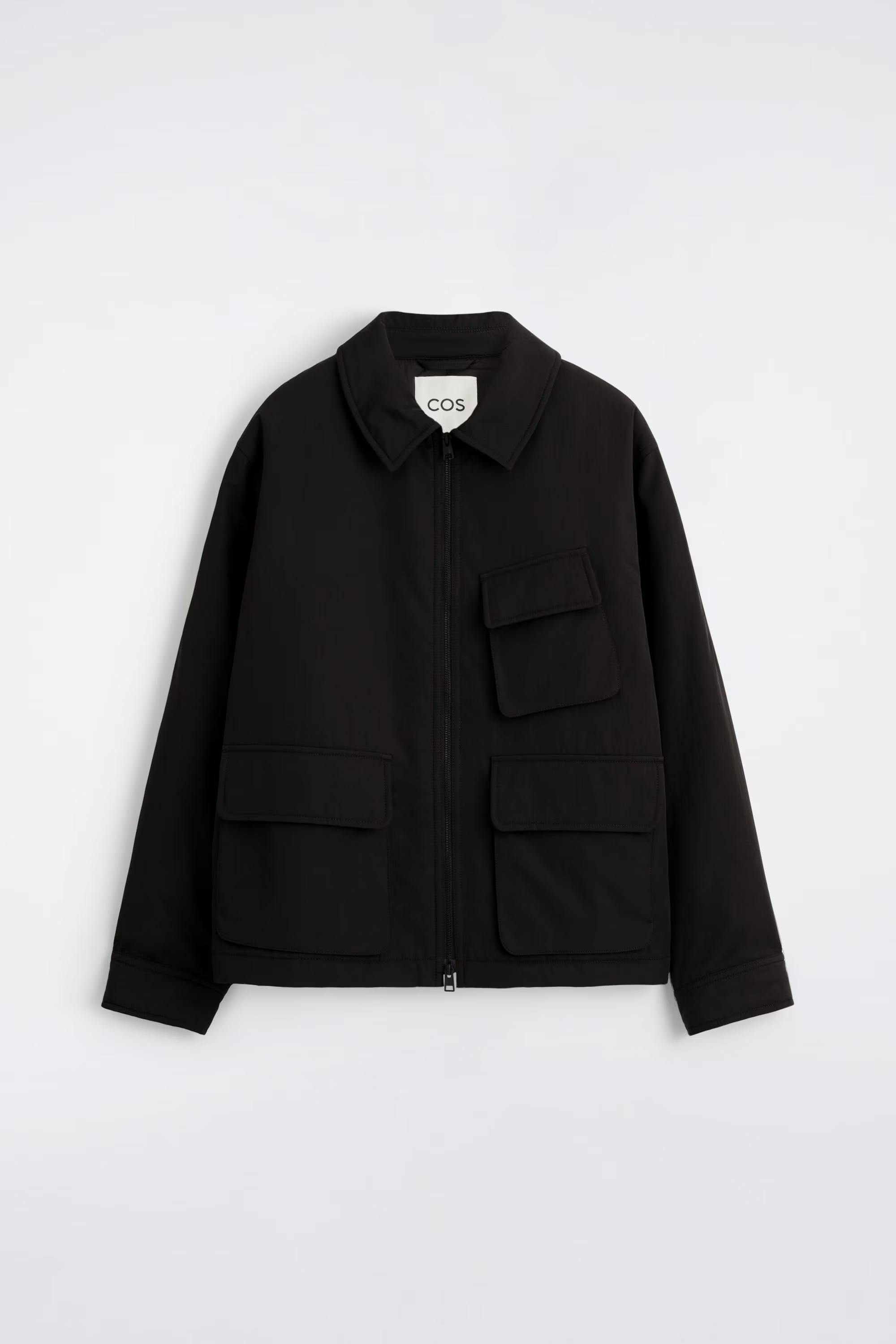 This modern utility jacket is great for transitioning between the seasons. Cut in a relaxed shape, it's crafted from nylon and cotton in a versatile light-grey tone and features a padded lining for warmth. It's finished with patch pockets, an internal pocket and an elasticated hem.\u0026nbsp;Relaxed fitZip closureRecycled polyamide is polyamide made from textile waste in production\u0026nbsp;Shell: 74% Recycled polyamide (Recycled nylon), 26% Cotton. Lining: 100% Recycled polyamide. Padding: 100% Recycled polyester. Excluding trims / Machine wash\u0026nbsp;Back length of size M is 68.3cm / Model wears a size M