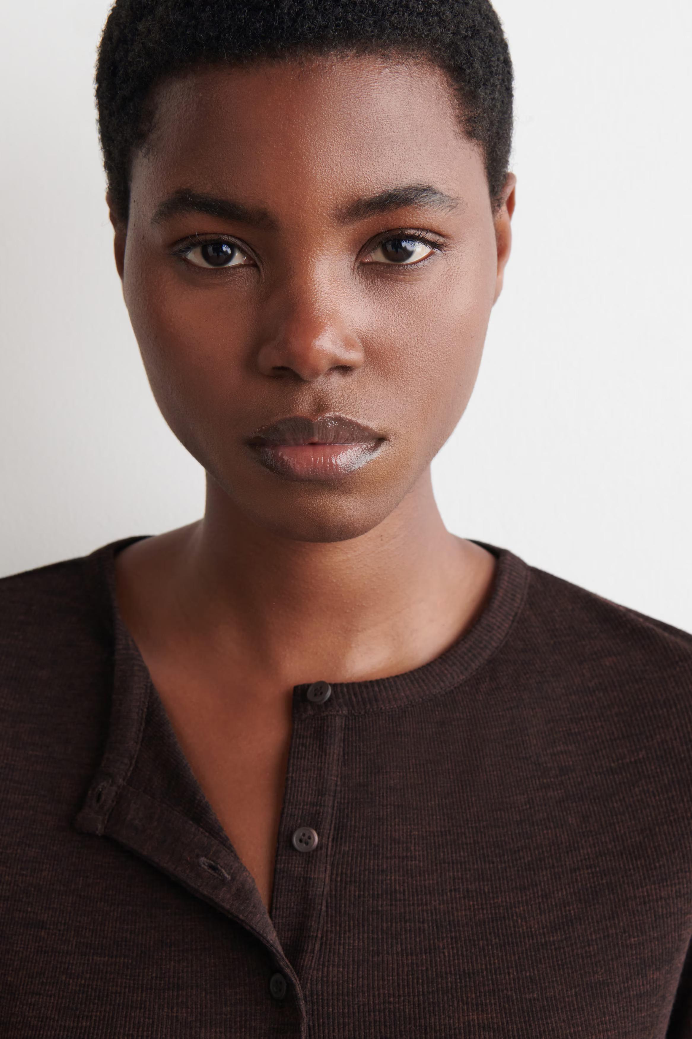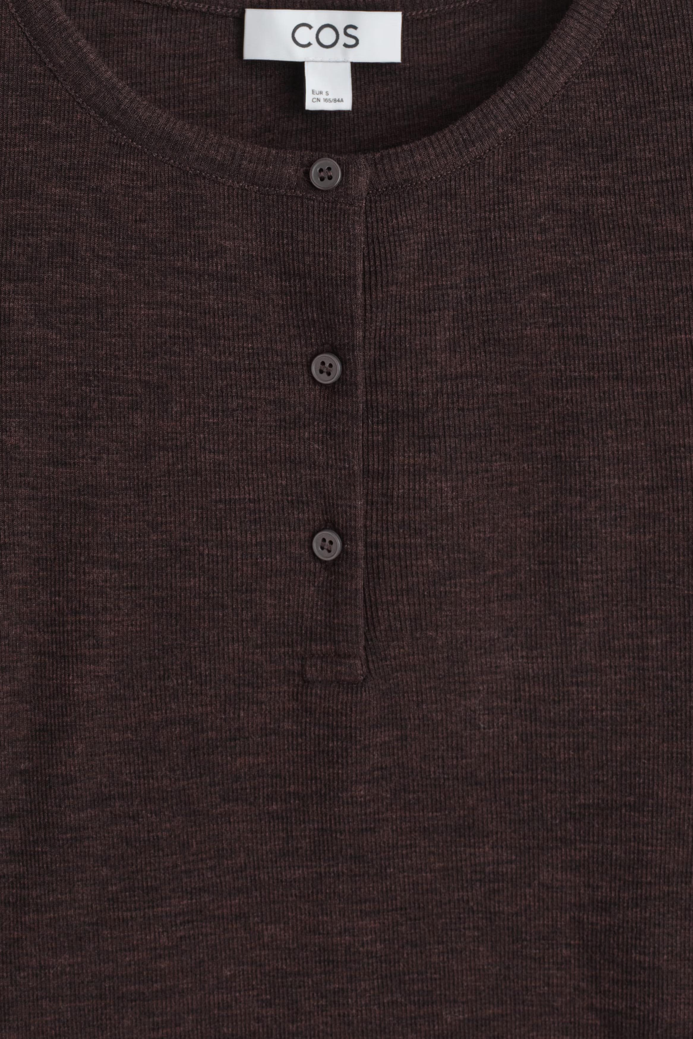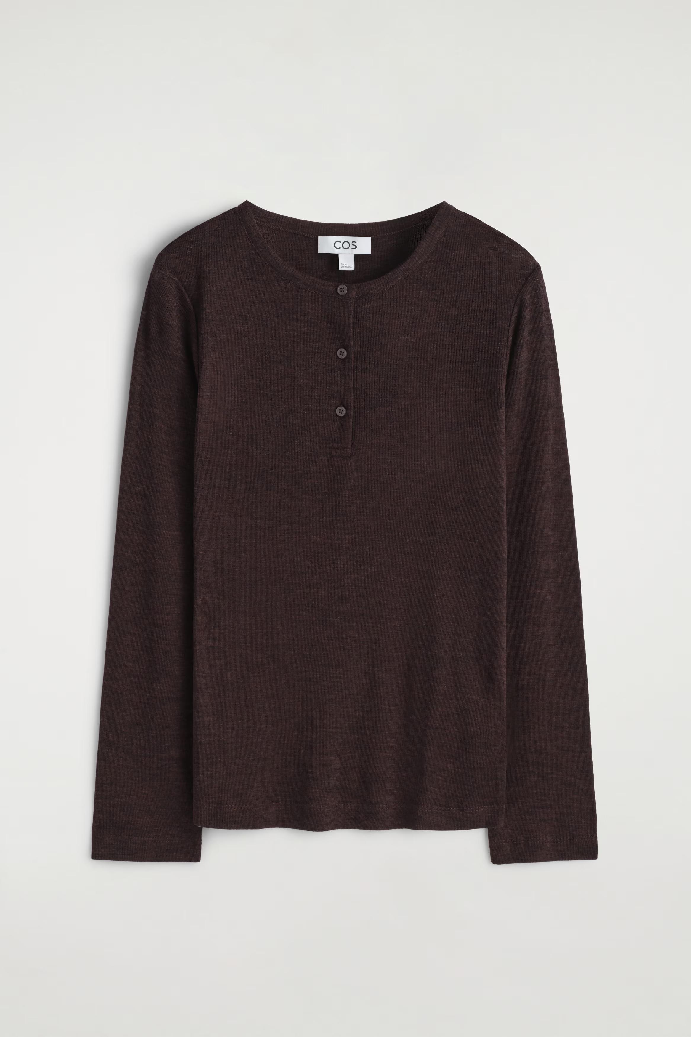 Perfected staples are the foundation of a well-curated wardrobe. Rendered in classic ivory, this Henley top is rib-knitted from ultra-soft merino wool and designed with a rounded neckline, long sleeves and a row of buttons. It lends itself to intentional layering.\u0026nbsp;Regular fitButton closureMachine wash\u0026nbsp;Back length of size S is 56cm / Model wears a size S
