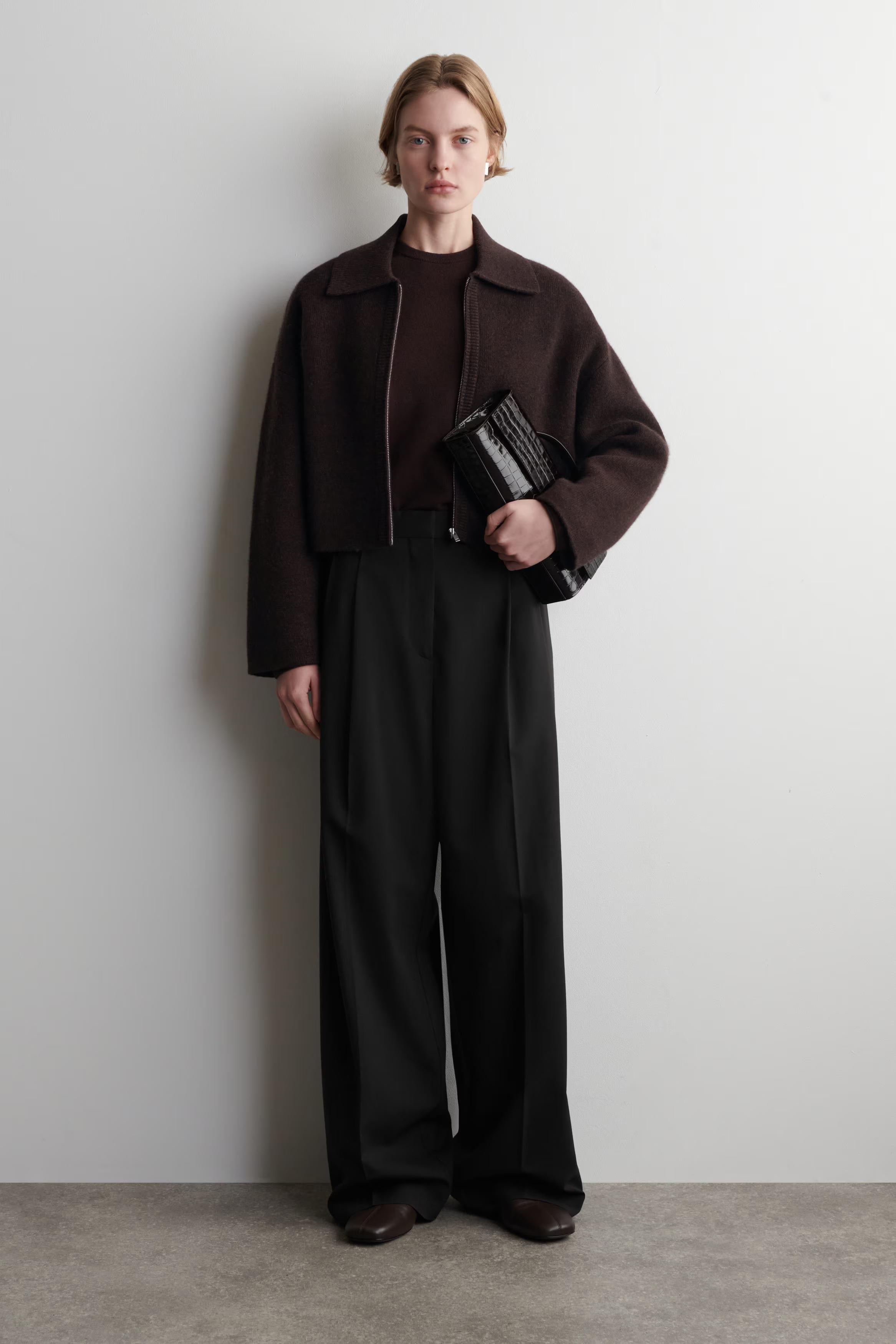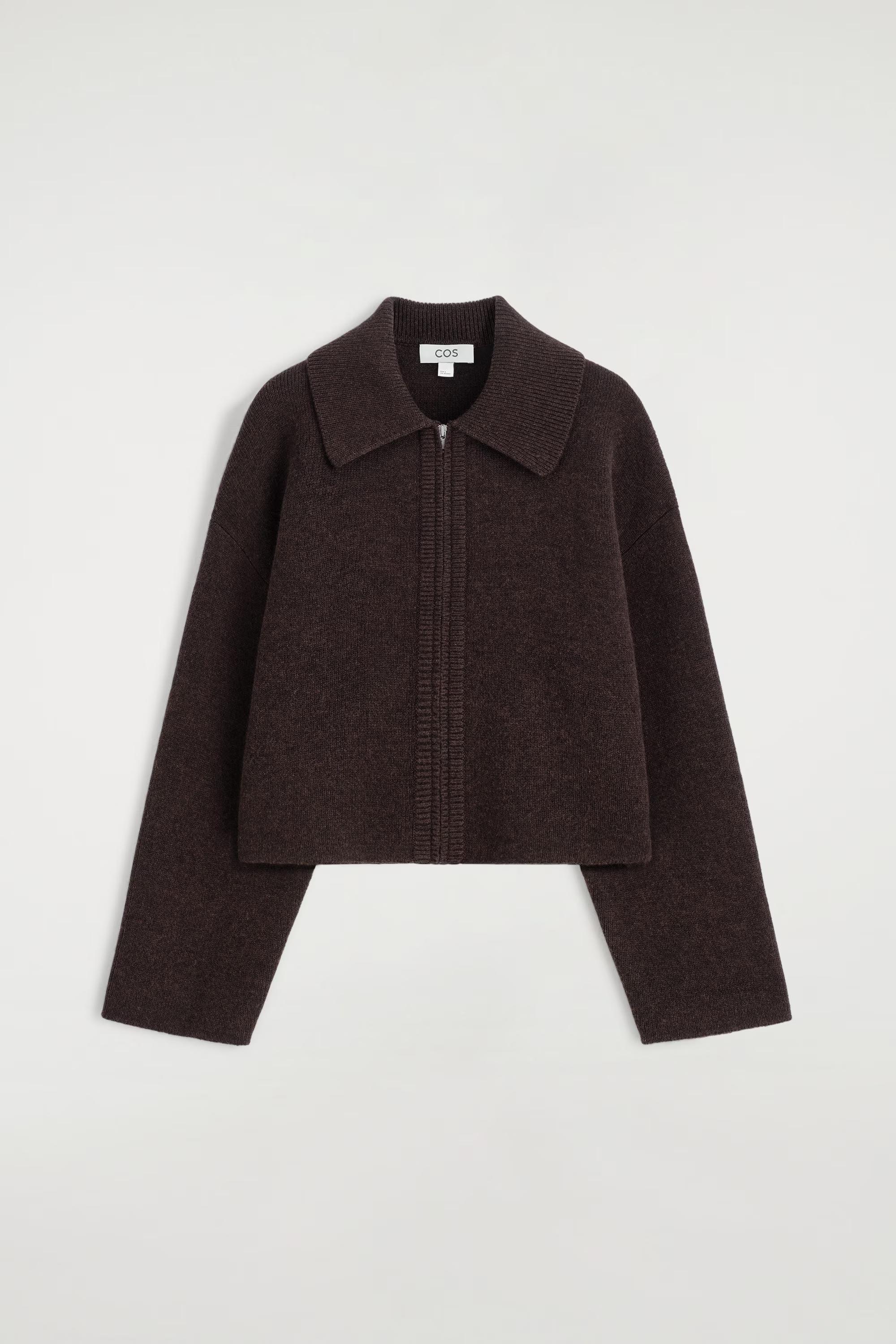 The transitional wardrobe comes to life through classic silhouettes and an understated colour palette. This refined jacket is crafted from double-knitted merino wool that's luxuriously soft and cut in a cropped, boxy shape that lends it to effortless layering.\u0026nbsp;\u0026nbsp;Regular fitZip closure\u0026nbsp;Shell: 97% Merino wool, 2% Recycled polyamide (Recycled nylon), 1% Elastane. Excluding trims / Dry clean\u0026nbsp;Back length of size S is 48cm / Model wears a size S
